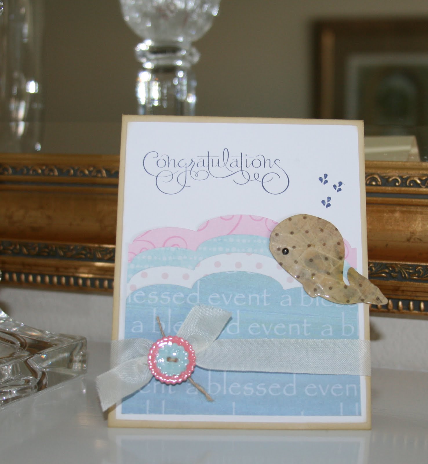 Hi , I know this is like my other card. I needed to make a card for my nephew and his wife to congratulate them on the good new that they are expecting . So I figured I would just crack a whale and the buttons so that I could enter something in the MIM challenge. Have a great weekend.