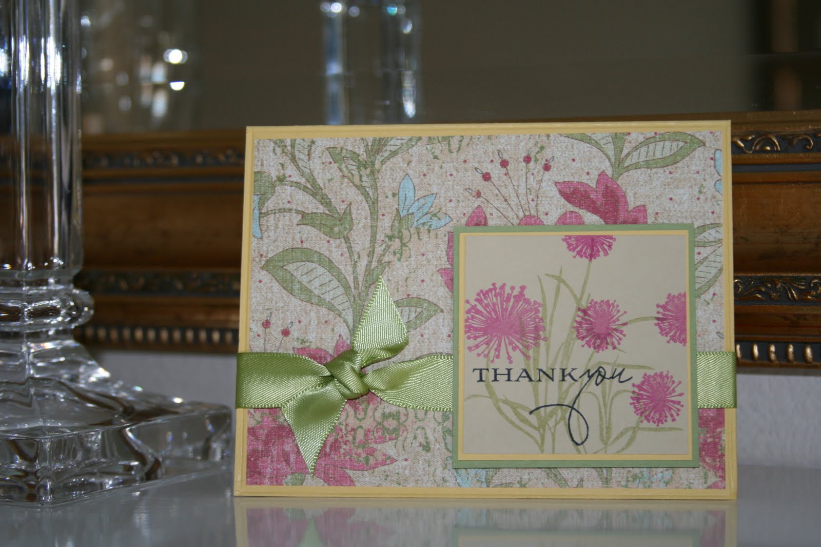 Happy Friday! This is a quick thank you card for a friend who is always having us over for dinner. She is a teacher , comes home from work and for some reason wants to cook. We have them over too, but I don’t work outside the home. I thought the PTI anniversary set went well the K&Co. printed paper.