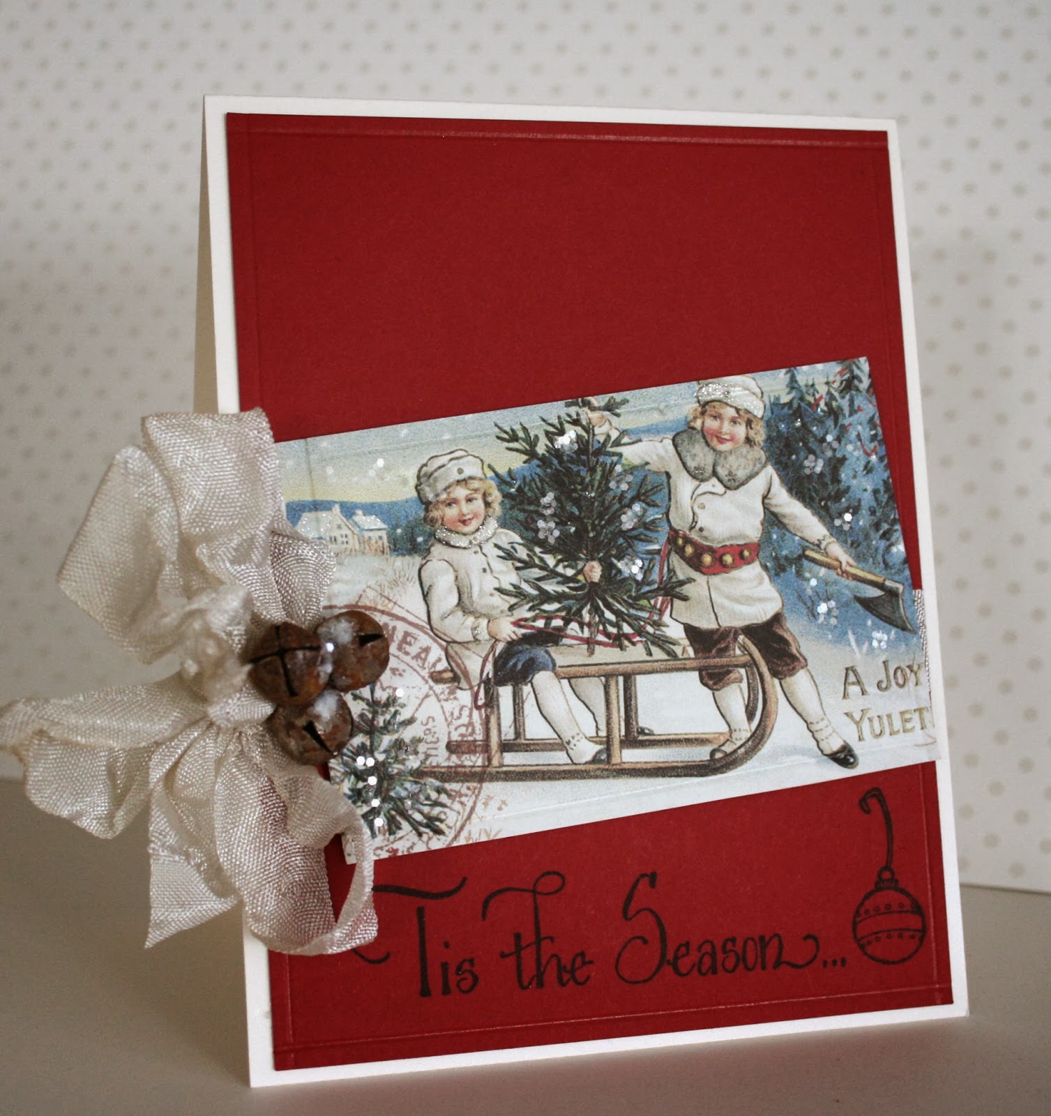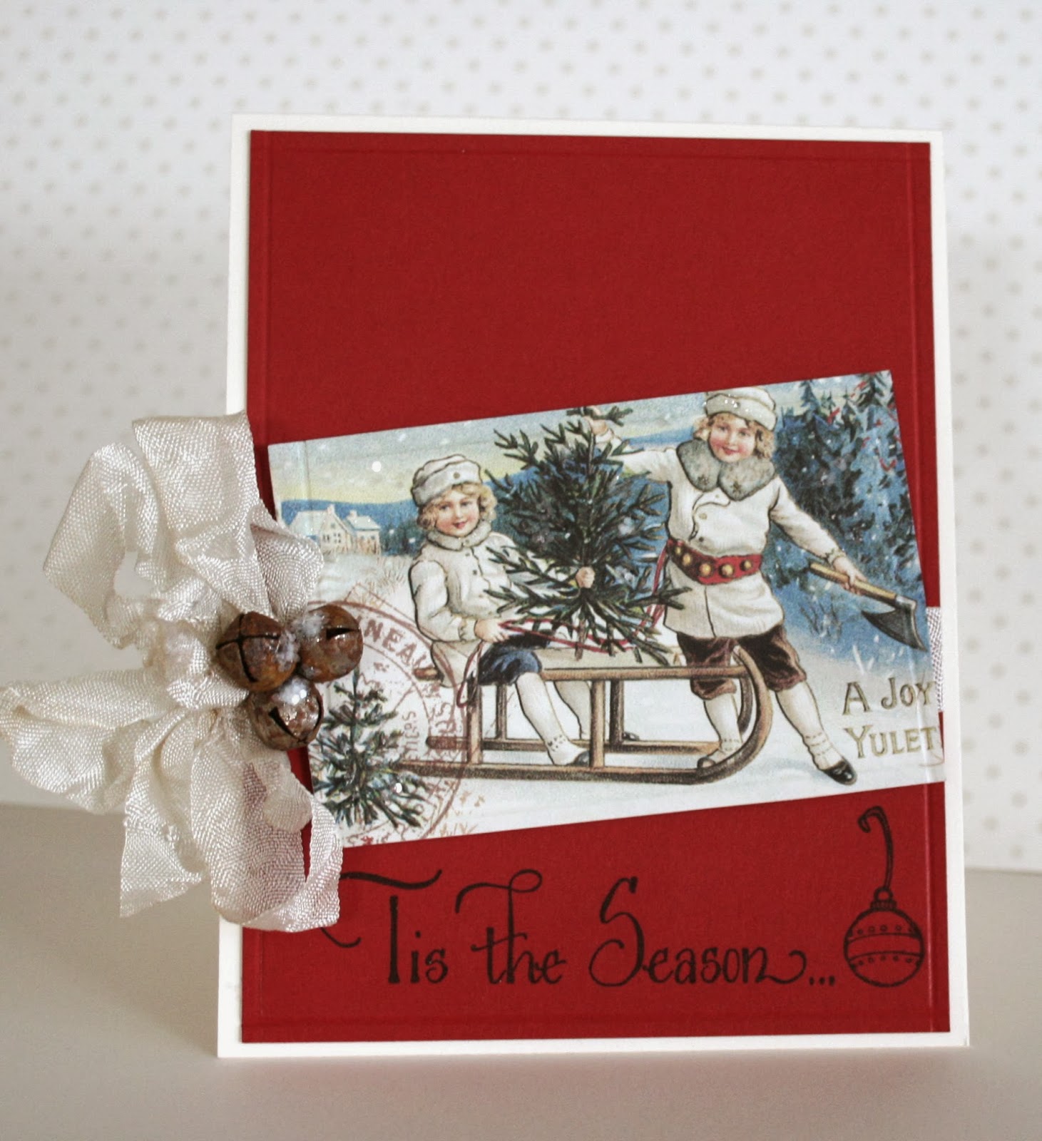 ReplyDeleteJust had a minute to catch up on your blog...WOW! You have been busy. I love the vintage Christmas card. The image you used is so dear. Wonderful bow and the jingle bells are just perfect!