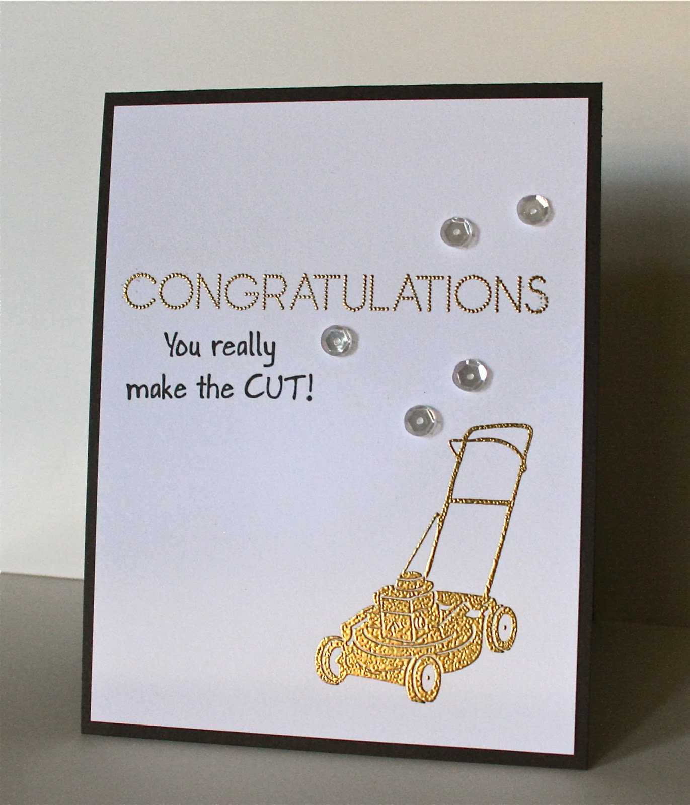 4. Guy cards are the hardest! These are both spot on! Such a cute lawnmower, and then in gold, gives an elegant touch. Love the glossy accents too!