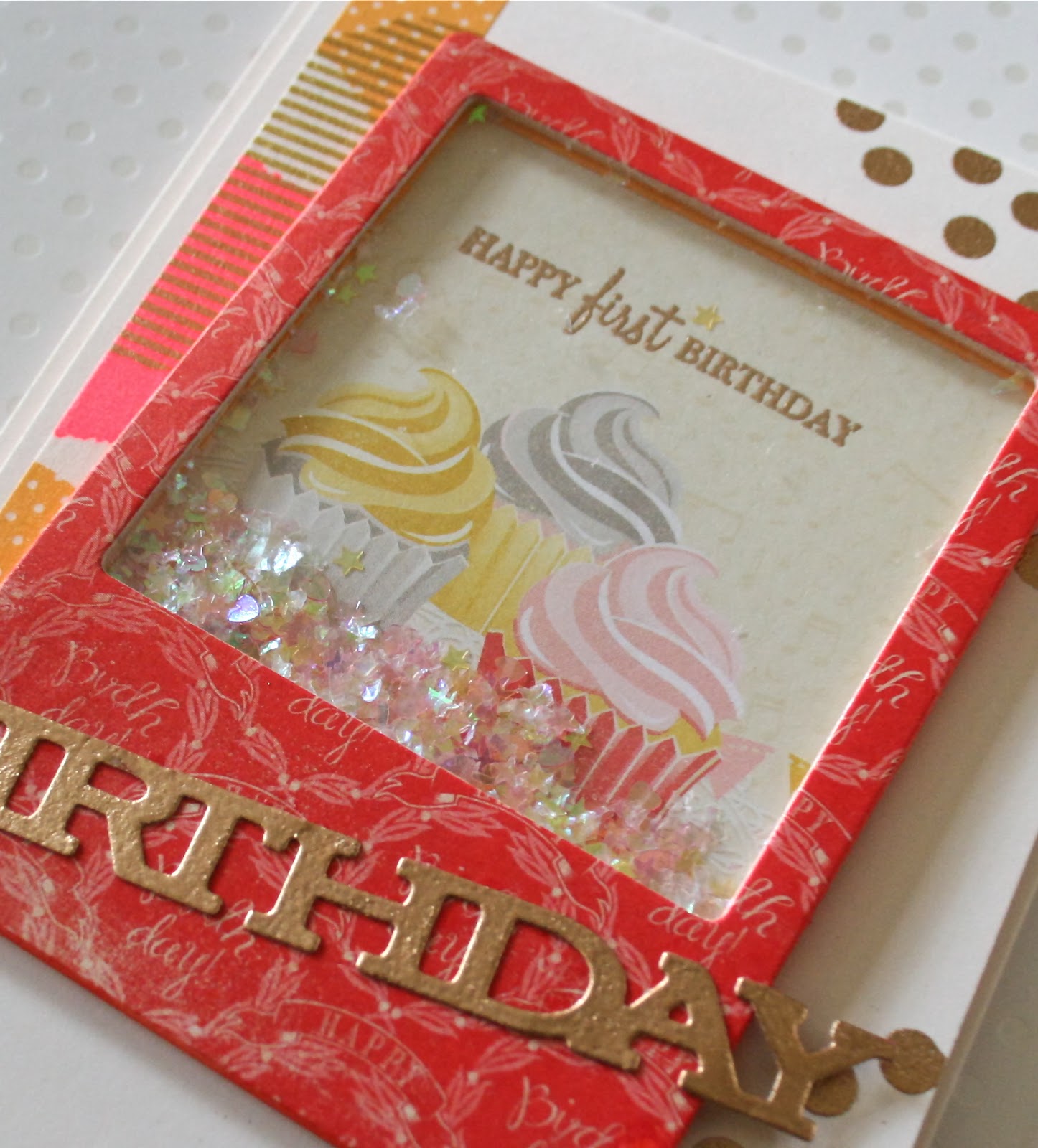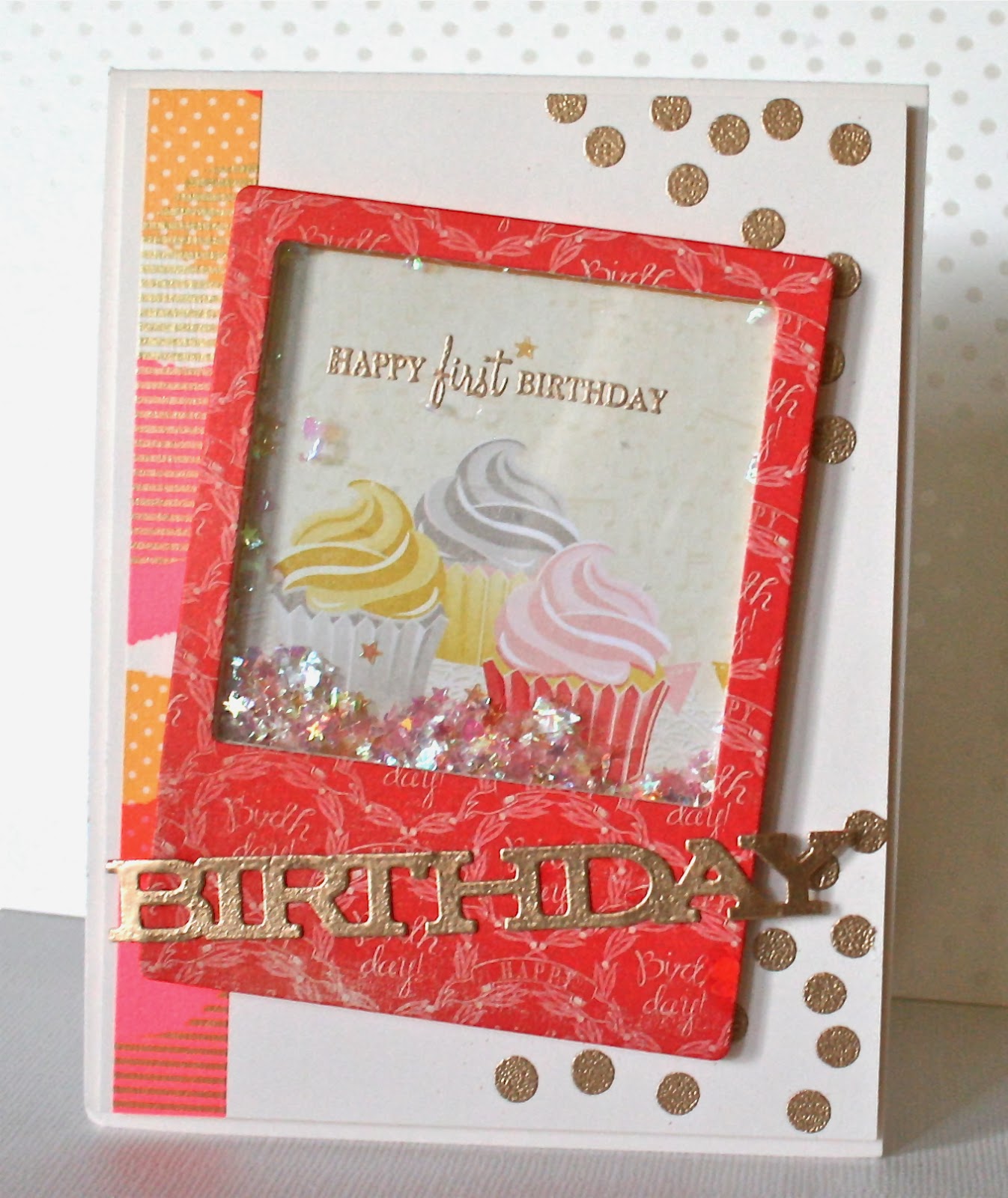ReplyDeleteWhat an adorable birthday card! That patterned paper is fabulous--love the cupcakes! Love the shaker feature and all that wonderful gold too.