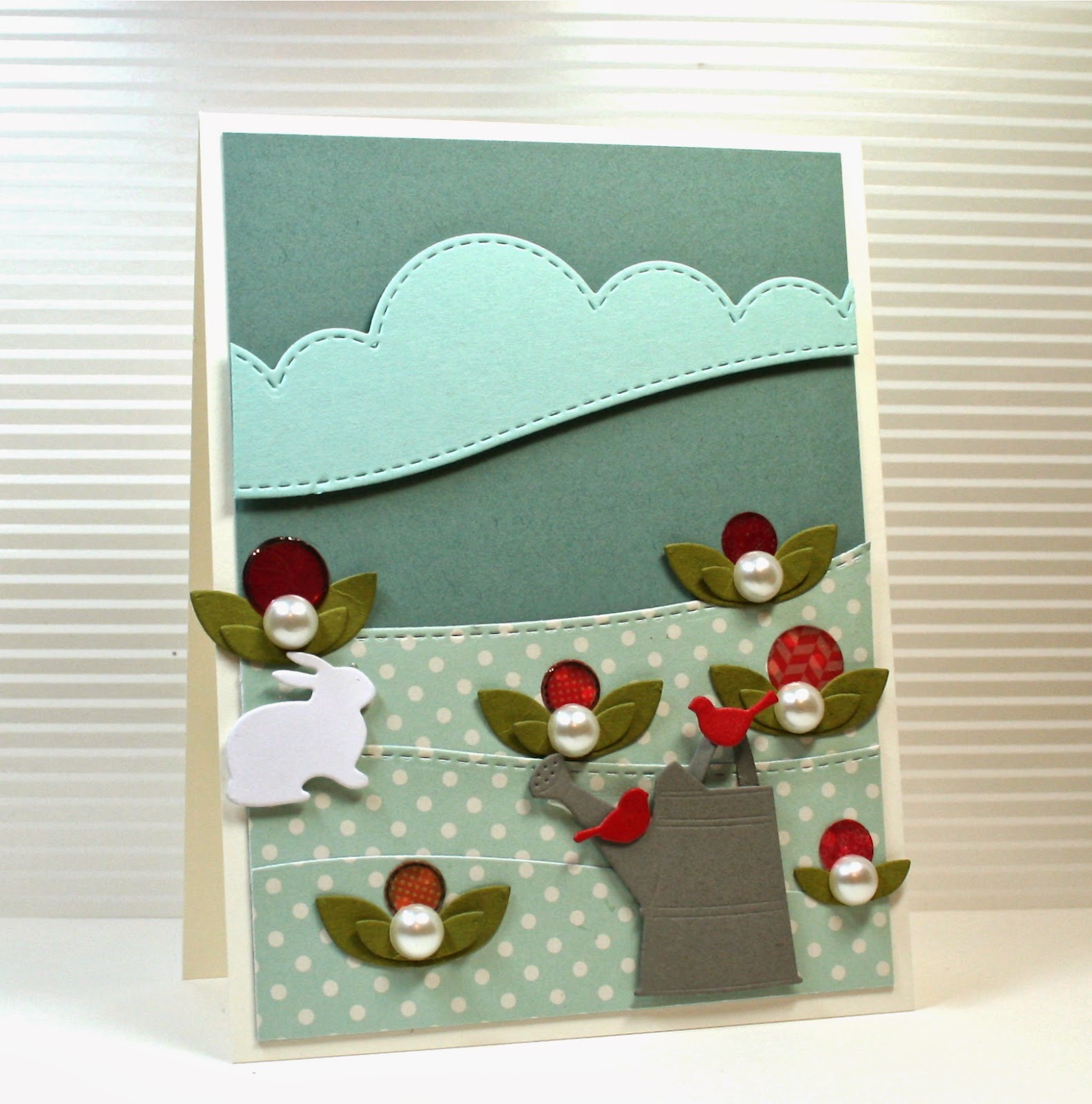 I hope I don't have to choose a favorite from among these fantastic cards! As usual, Marybeth, you've created a plethora of wonders. Sweet little bunnies, and I'm loving the stitched square, the sweet tulip, the tiny layered flowers, the color palette...well, you get the idea! You've rocked this kit. They are all just wonderful. Bev