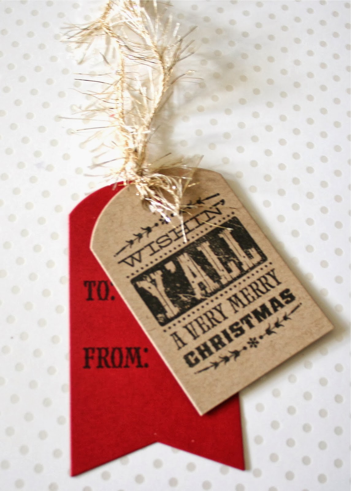 The tag die is from Papertrey Ink and the circle is from Lil Inkers Stitched circles. The ribbon was a gift from a friend.