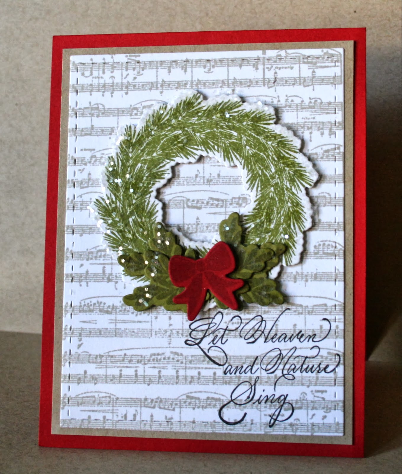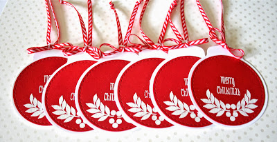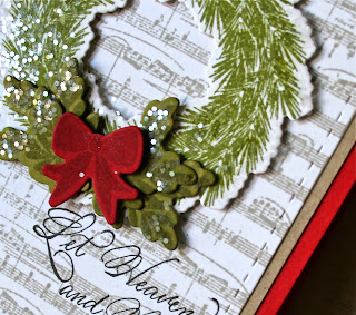 My heat embossed tag is stamped with Woodland Wreaths and